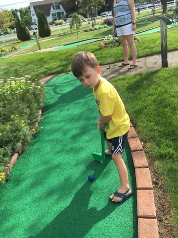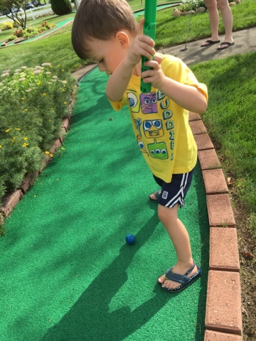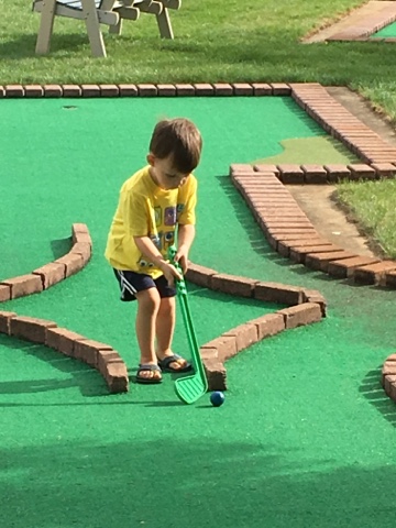 We weren’t really sure how long he would last so we took him to Essenhaus Mini Golf. He was surprisingly focused and willing to play all the way through 18 holes!